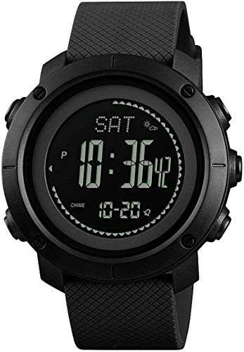 デジタル搭載メンズ腕時計。高度計・気圧計・コンパス機能やランニング・目覚まし機能完備。天気情報・気温・活動量計、万歩計、消費カロリーも測定。アウトドアやスポーツに最適。日本語説明書付き。