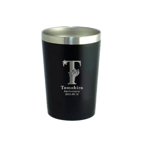 名入れタンブラーMIPは、380mlのステンレス製断熱タンブラーです。フラワーフォントでの名入れが可能で、還暦祝いなどの記念日に最適。ブラックカラーでシックな印象を与えます。