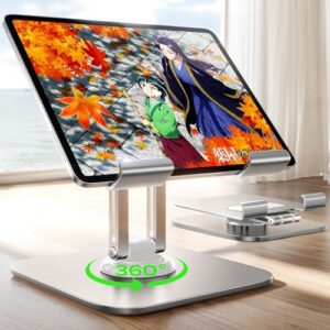 LISEN【最新スイッチ2にも対応】iPad スタンド タブレット 360角度自由調整 スタンド 卓上 折り畳み タブレットホルダー 滑り止め モニター 安定性拔群 置き台 テーブル 2025人間工学設計 タブレットPCアクセサリセット iPad 10世代 Air mini/Pro/Fire hd/Kindle/Surface book/Switch 2/スマホ チャコールグレー 銀