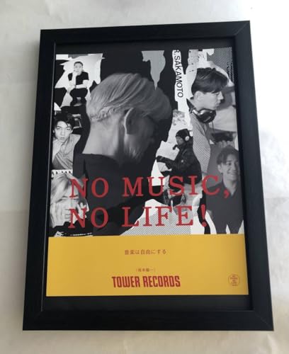 坂本龍一、YMO、タワーレコードの広告を使用したA4サイズの額装品。高橋幸宏と細野晴臣のコラージュデザイン。ポスター風で、音楽ファン必見のアート作品です。