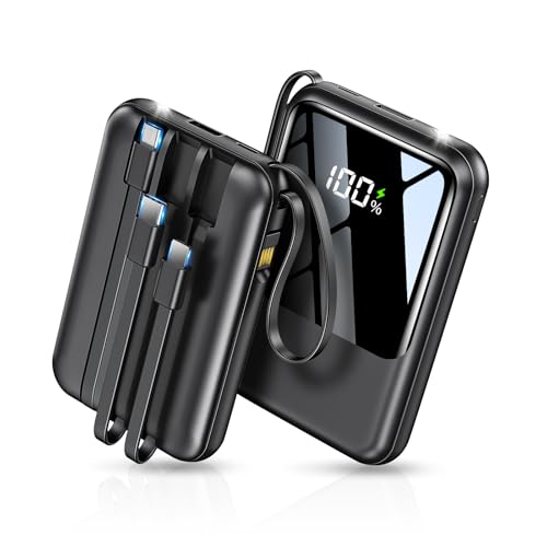 大容量22000mAhのモバイルバッテリー。約230gの軽量設計で4つのケーブル内蔵。急速充電対応、4台同時充電可能、残量ディスプレイ、LED照明、マルチ安全回路、PSE適合、コンパクトで旅行に最適。