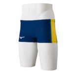 ミズノのエクサースーツは、競泳や練習に適したショートスパッツで、カラーはネイビー×イエローです。サイズはMで、優れた伸縮性とフィット感を提供し、パフォーマンスを向上させます。