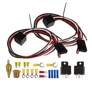 ACROPIX デュアル電動ファンリレーキット サーモスタットスイッチ付 185オン 175オフ 40A ラジエーター電気冷却ファン ブラック 2個