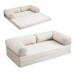JvFunのフロアソファーは、組立て不要で高反発ウレタンを使用。2人掛け・3人掛けが可能で、クッション付き。おしゃれでコンパクト、1人暮らしや来客時に最適なベージュソファです。