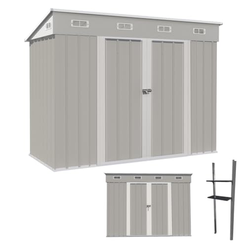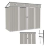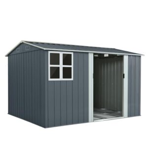 【可動棚付き】スチール製の屋外物置。サイズは270×126×189cmで、防水・防錆性能を備えた耐久性の高い大型収納庫。玄関やベランダ、ガーデニング用品の収納に最適です。