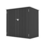 SOFTSEA 物置は屋外用の大型スチール倉庫で、サイズは幅141×奥行き86×高134cm。底なしで、防さび・防水機能を備え、施錠可能な両開きドアで盗難防止。ブラックカラー。