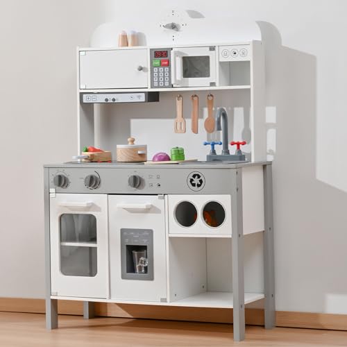 OSJ おままごと キッチン おもちゃ 木製 おままごとセット 子供 知育玩具 調理器具 製氷機 ベビー ギフト調理器具付き コンロ ミニキッチン 飾り棚