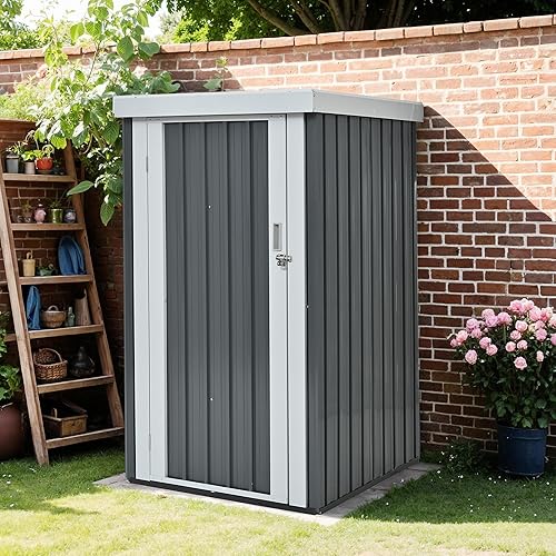 OSJ 物置は屋外用のスチール製倉庫で、サイズはL96*W94*H165cm。おしゃれなデザインで、大型の収納が可能です。さびに強く、防水仕様。引戸とロック付きで安全性も高く、ガーデニングや庭の片付けに最適です。