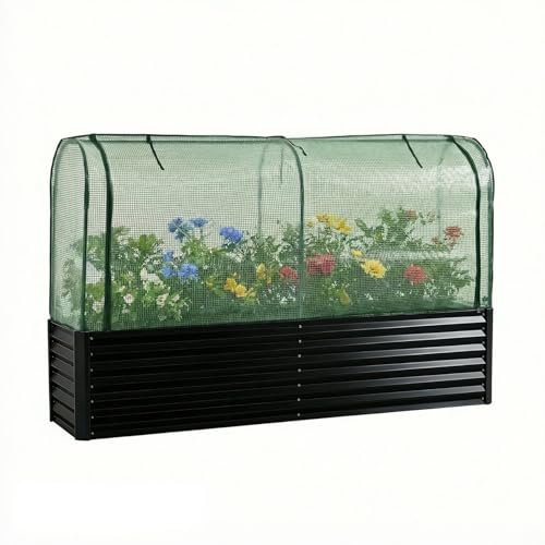 Harper & Bright Designs レイズドベッド 大型 ビニールハウス付き 保温カバー 庭 家庭菜園 DIY プランター 粉体塗装 屋外 ガーデンボックス おしゃれ 花壇 組立簡単 ブラック L200×W50×H45cmの高価買取