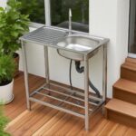 BTMの屋外用ステンレス流し台は、水栓付きでキャンプやバーベキューに最適。幅広デザインで簡易洗い場として利用可能です。アルミ製で軽量、持ち運びも便利!