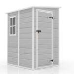 Donextの大型屋外物置(幅151×奥行92×高さ183.5cm)は、1700Lの大容量。防水・耐侯性に優れ、窓付き・床板付きで、ガーデンや農場に最適な頑丈な樹脂製倉庫です。ライトグレー色。