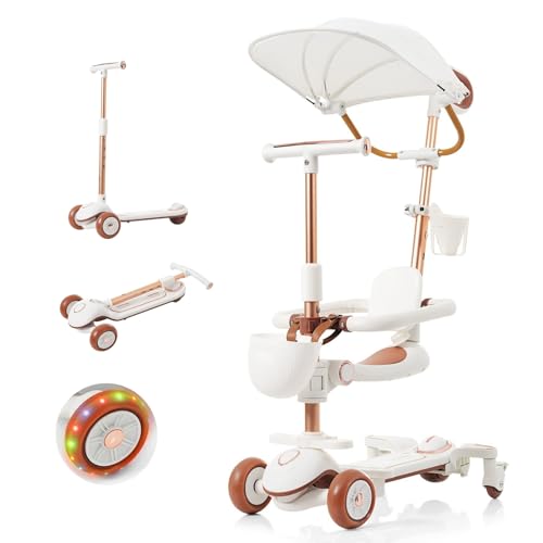 SOFTSEA キックボードは、1歳から10歳対応の5way三輪車。4段高さ調整、光る後輪ブレーキ、軽量で折りたたみ可能。収納付き、サンシェード付きで可愛いデザイン。誕生日プレゼントに最適!