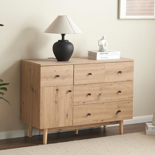 SOFTSEAの収納棚は幅100cmで大容量のリビングキャビネットです。引き出し5杯と3段の開き扉付きで、脚付きデザインが魅力の木製タイプ(ナチュラル)です。キッチンボードやテレビ台としても活用可能です。