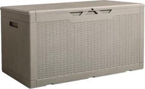 屋外ゴミ収納庫 大容量 屋外収納ストッカー ゴミ収集ボックス ごみ集積所 室外収納庫 物置 収納ボックス 金属製 取手付き 室外用ゴミ箱 おしゃれ ガーデニング収納 ベランダ 庭 玄関 カラスよけ 野良猫対策 ごみ荒らし防止 (グレー, メッシュデザイン+容量292L)