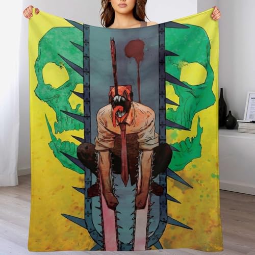 チェンソーマンのアニメイラストブランケット。サイズは125×150cmで高精細プリント。フランネル素材使用、抗菌・防ダニ加工あり。軽量でふんわり感があり、オールシーズン洗濯可能。痛部屋にぴったり。