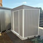 NARUKAMIIの大容量3300L戸外収納庫。防水・防錆仕様のスチール物置で、おしゃれなデザイン。引戸タイプでガーデニングや庭の収納に最適。カラーはブラック、ブラウン、グレー。