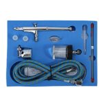 デュアルアクションエアブラシキットは0.2mm、0.3mm、0.5mmのニードルを備え、タトゥー、ネイル、メイクアップ、モデルペイントに最適。エアホース付きで扱いやすく、精密なスプレーが可能です。
