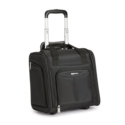Amazonベーシックのキャリーバッグは、座席下に収まるサイズ(33×33×23cm)で、シンプルなブラックデザイン。旅行や日常使用に適した耐久性のある素材で、フロントポケット付きで便利です。