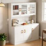 SIRUNLY食器棚 大容量収納 多機能キッチンキャビネット 密閉防塵 サイドボード 扉付きリ おしゃれでシンプル キッチン リビングルーム用 100*30*162cm 日本語説明書付き(ホワイト) 高価買取中