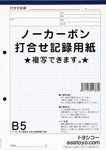 ノーカーボン複写打合せ記録用紙(B5サイズ、1冊入り)は、建築・リフォーム・営業現場で活躍します。筆圧による簡単な複写が可能で、効率的な記録管理をサポートします。