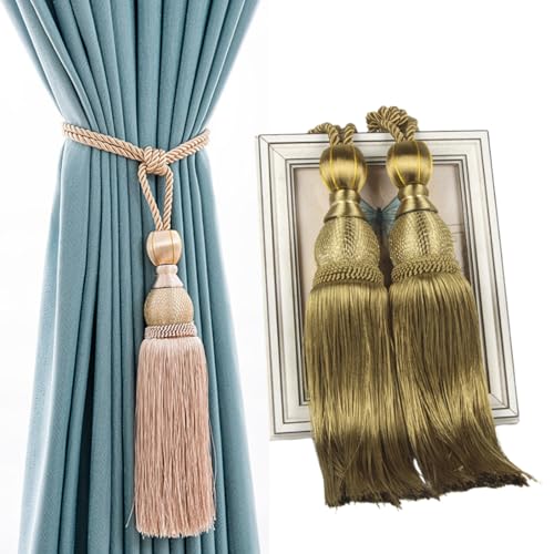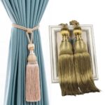 カーテンタッセル2本セット。グリーンのカーテンアクセサリーで、カーテン留めやカーテンホルダーとして使用可能。ロープタイプでおしゃれなデザイン、NYANDELMO製品。