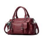 / NICOLE&DORIS ミニボストンバッグ レディース 革 ハンドバッグ 2way ショルダー 斜めがけカバン レトロ 肩掛け 手提げかばん 軽量 底鋲付き 可愛いチャーム付き 防水レザー 自立 通勤 デート ladies bag ワインレッド