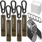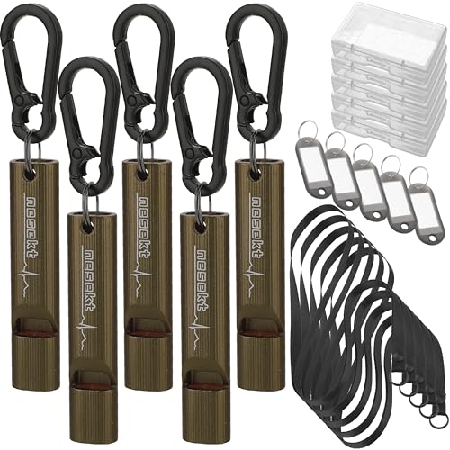 ネセクトのエマージェンシーホイッスルは、防災や防犯に最適な小型軽量アルミ製品。大音量で緊急時にも遠くに届き、ストラップやカラビナ、ネームプレートが付属。食品衛生法適合品で安心。5個セット、マットオリーブ色。