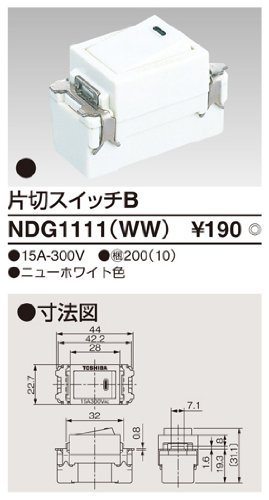 東芝ライテック 片切スイッチB NDG1111(WW)は、白色のデザインでシンプルな操作性が特徴のスイッチです。定格電流15A、AC100V-240V対応で、家庭やオフィスに適しています。