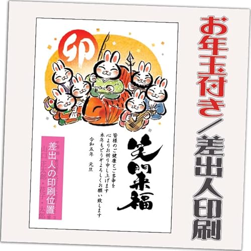 年賀状 2026 お年玉付き 年賀はがき【20枚】午年・うま年用。年賀状じまいシール付、印刷・プリントサービスあり。差出人印刷込み(デザイン:GE01)。注文時の「お届け先住所」+「氏名」を印刷します。