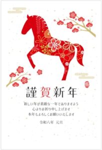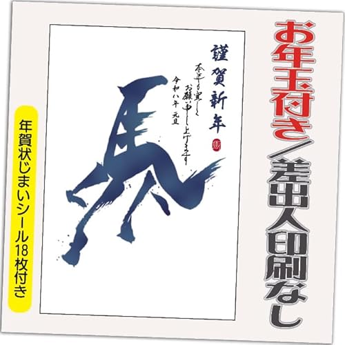 2026年用のお年玉付き年賀状(20枚入り)です。午年デザイン(HA109)で、年賀状じまいシール付き。差出人なしの状態で印刷・プリントが可能です。