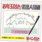2026年のお年玉付き年賀状、20枚セットで筆ペン付き。午年(うま年)デザイン(B0317)。差出人住所と氏名印刷込み。年賀状じまいシール付き。お届け先住所で印刷。