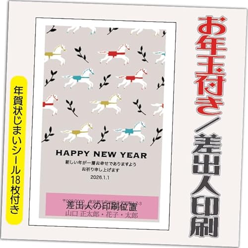 年賀状 2026 お年玉付き 年賀 はがき【4枚】午年 うま年 年賀状じまいシール付 印刷 プリント 4枚 差出人印刷込み(デザイン:HA074)印刷する差出人住所はご注文時の「お届け先住所」+「氏名」を印刷いたします 高価買取中