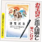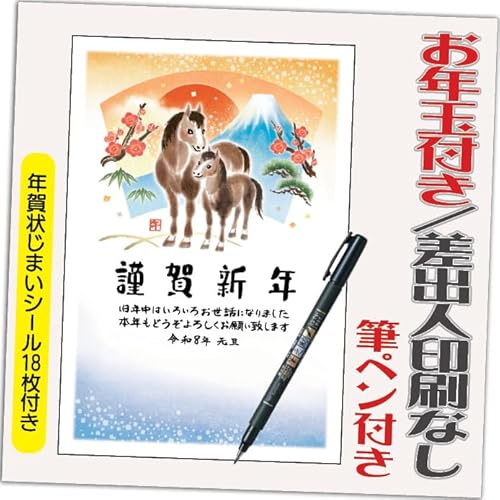 2026年用の年賀状(午年)4枚セット。お年玉付きはがき、筆ペン付きで、差出人なしのデザイン(HA013)。年賀状じまいシールも付属。印刷済みで手間いらずです。