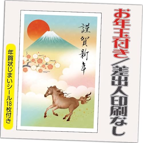 年賀状 2026 お年玉付き 12枚セット。午年(うま年)デザインで、印刷済みの10枚と予備の2枚が含まれています。差出人なしで、年賀状じまいシールも付属。新年の挨拶に最適です。
