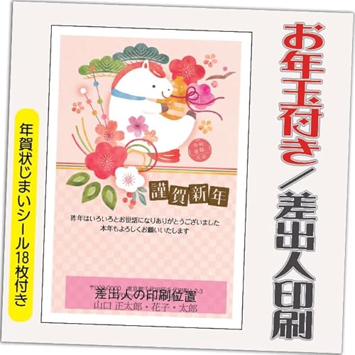 年賀状 2026 お年玉付き 年賀はがき【12枚】。午年うま年用、年賀状じまいシール付き。印刷は選べるデザイン10枚+2枚、差出人印刷込み(デザイン:GQ02)。差出人住所は「お届け先住所」+「氏名」を印刷。