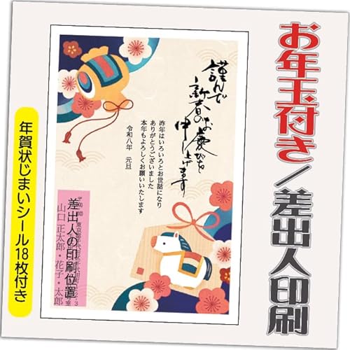 年賀状 2026 お年玉付き 年賀はがき12枚セット。午年、うま年のデザインを選べる!10枚+2枚差出人印刷込み(デザイン:GW09)。お届け先住所と氏名が印刷されます。