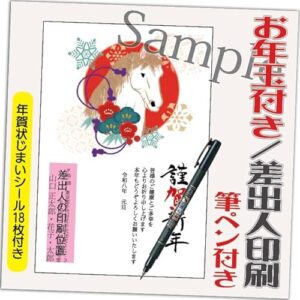 年賀状 2026 お年玉付き 年賀 はがき【12枚 筆ペン付き】午年 うま年 年賀状じまいシール付 印刷 プリント ●選べるデザイン 10枚+2枚 差出人なし(デザイン:B0235)