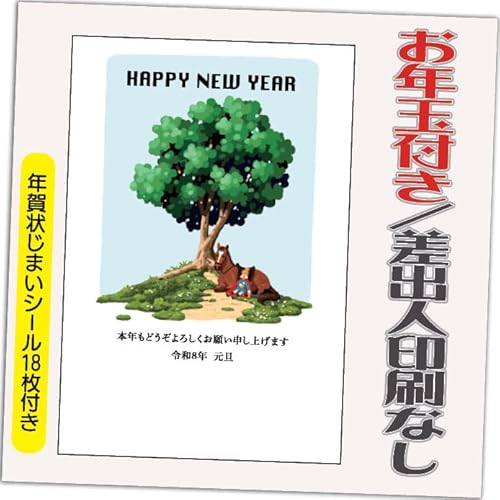 年賀状 2026 お年玉付き 年賀はがき【12枚】。午年(うま年)デザイン、印刷・プリント10枚+2枚、差出人なし。年賀状じまいシール付。デザインコードHA069。