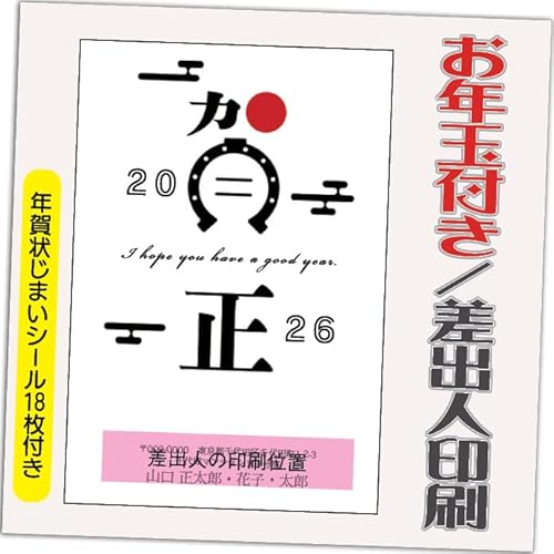 年賀状 2026 お年玉付き 年賀 はがき【20枚】午年 うま年 年賀状じまいシール付 印刷 プリント 20枚 差出人なし(デザイン:HA031)