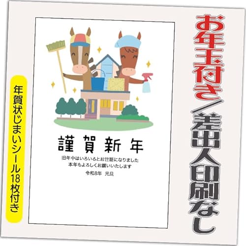年賀状 2026 お年玉付き 年賀 はがき【12枚】午年 うま年 年賀状じまいシール付 印刷 プリント 10枚+2枚 差出人なし(デザイン:HA123)の高価買取