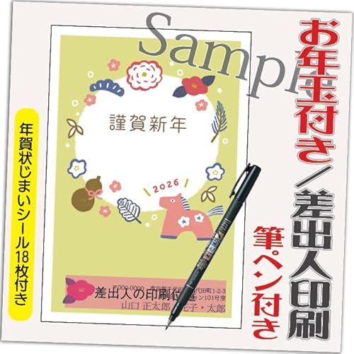 年賀状2026 お年玉付12枚 筆ペン付の製品情報