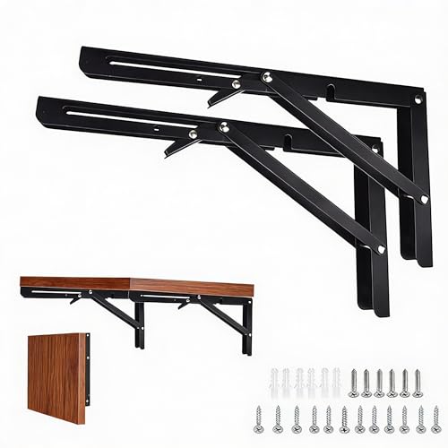 折りたたみブラケット棚受け金具 L字型は、耐荷重150kgで壁掛けに対応。2個セットでネジ付き、黒色の30cmサイズ。DIYや吊り棚に最適な棚支えです。