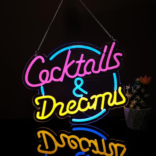 LIUISNEO Cocktails and Dreams ネオンサイン、革新的な一体型成形プロセス、調光スイッチ付き、すべてのホリデーパーティーやホームデコレーション用の高価買取