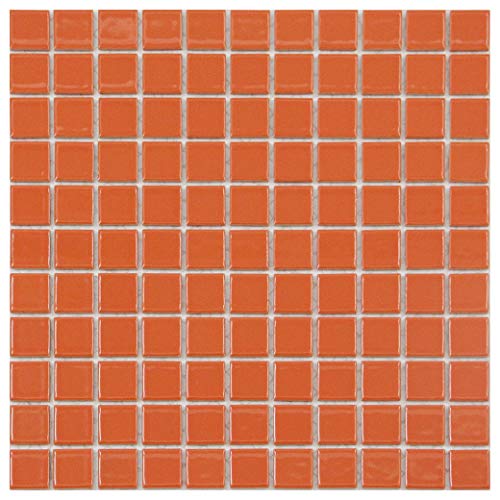 25mm角モザイクタイルシート【ビビッドカラー】タイルの表面が見えて施工しやすい裏ネット張り スタンダードオレンジNET-25k-62の高価買取
