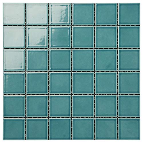 47mm角モザイクタイル【レトロ単色】は、レトロでおしゃれなデザインの裏ネット張りタイルです。6列×6列のシート張りで、あさぎいろの美しい色合いが特徴です。