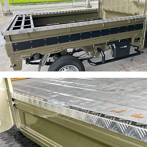 汎用軽トラ用のあおりガード・リアゲートプロテクターです。アルミ縞板製のロングタイプで、3Pゲートカバーとして使用可能。耐久性が高く、車両の傷防止にも最適です。縞鋼板のデザインが特徴的。
