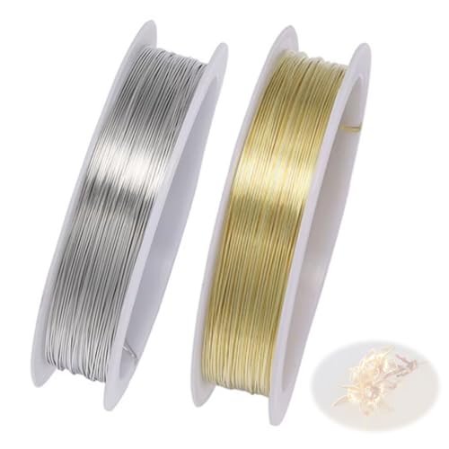 NIHOOOOH ワイヤーは、0.3mmの細い銅線で、30mの長さが2巻セット。ハンドメイドアクセサリーやクラフトに最適なゴールド&シルバーのジュエリー作りにぴったりなDIY素材です。