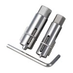 配管破損部引き抜きツール2点セット。12mmと14mmのパイプスクリューリムーバーに六角レンチ付き。水栓やバルブのネジ修理・メンテナンスに最適な頑丈で調整可能なツールです。