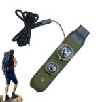 多機能ホイッスルは7つの機能を備え、LEDライト、コンパス、温度計が搭載。大音量で緊急時にも役立ち、軽量・コンパクトでアウトドアや防災に最適。サイズは12cm。