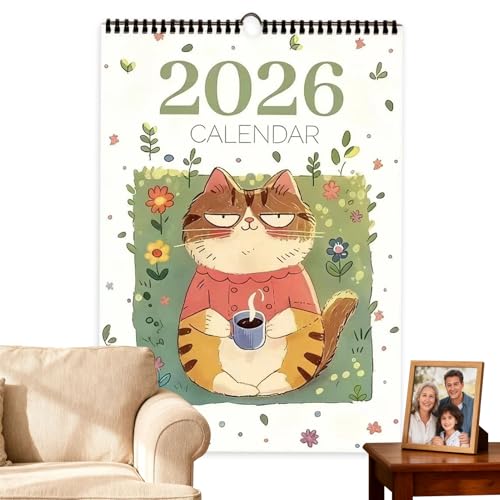 2026年猫カレンダーはハンドペイントデザインの12ヶ月ファミリーカレンダーです。スケジュール管理や装飾に最適で、家庭や学校の整理に役立ちます。